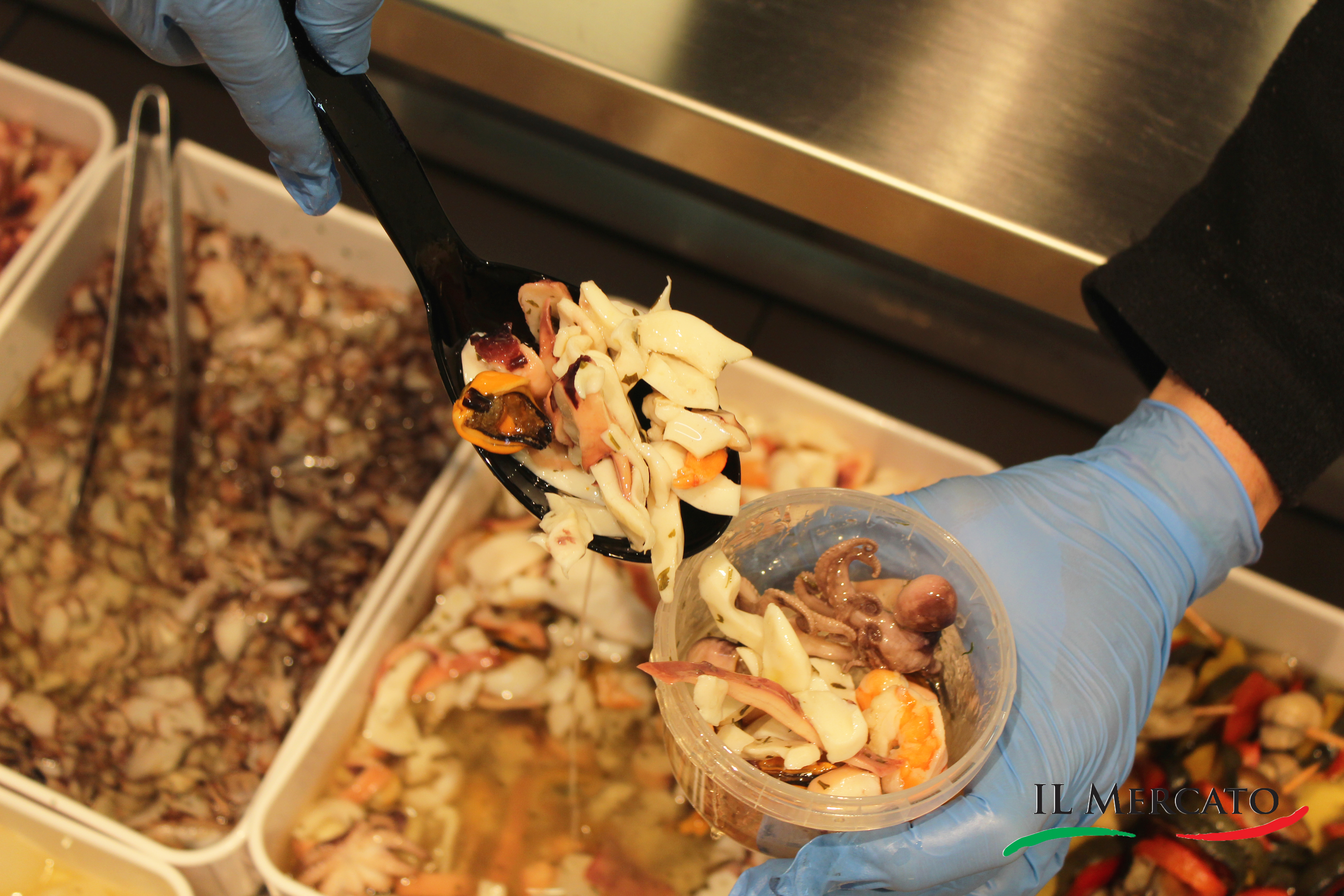 61% Weichtiere (Kalmare, Miesmuscheln, Sepien, Kraken,), Sonnenblumenöl, 4% Garnelen, Weinessig, Salz, Aroma, Säureregulatoren (E300), Konservierungsstoffe (E202, E211).